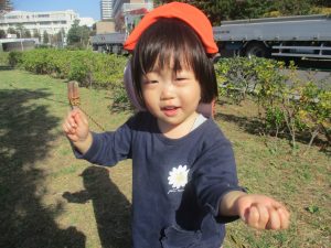 木の実や葉っぱ等、この時期らしい自然物がどの公園にもたくさん落ちており大収穫を楽しんでおります!