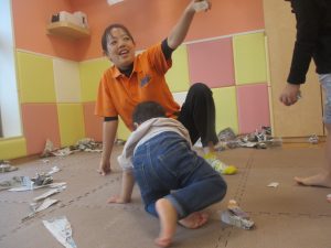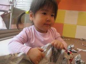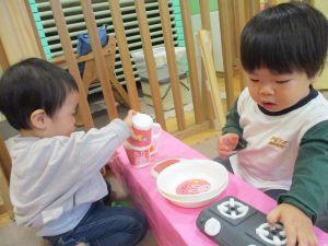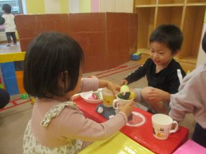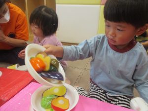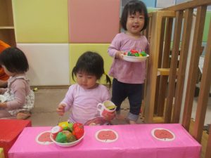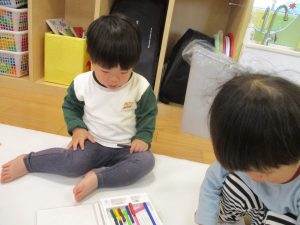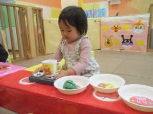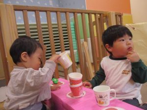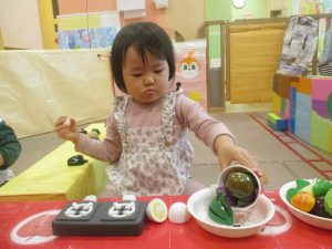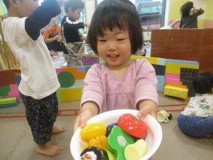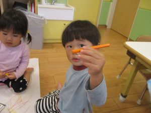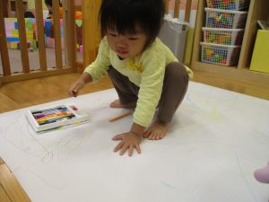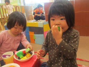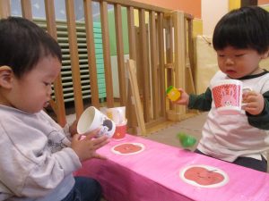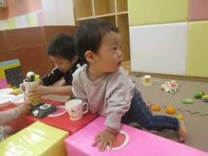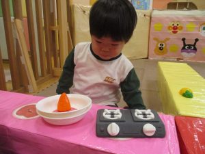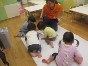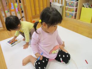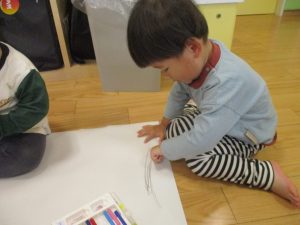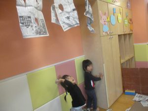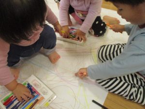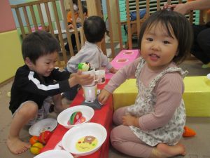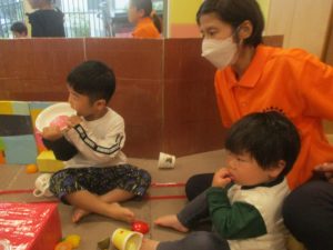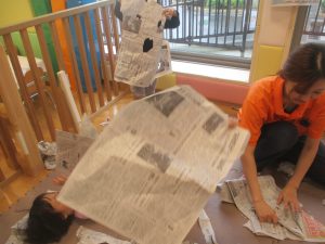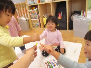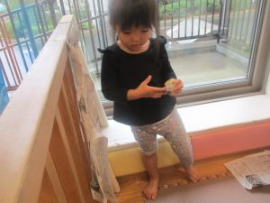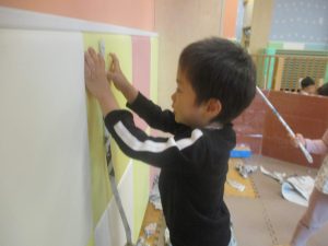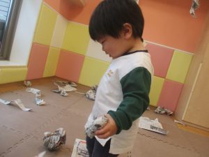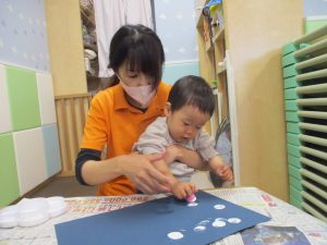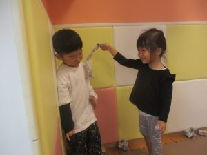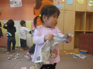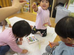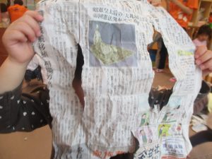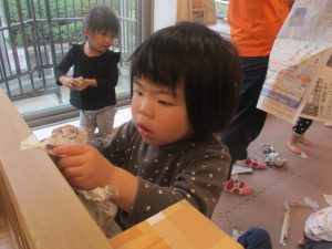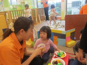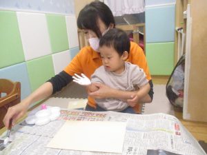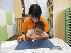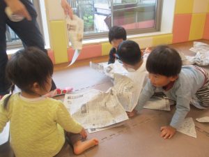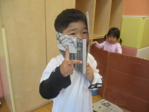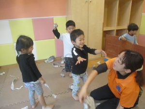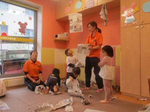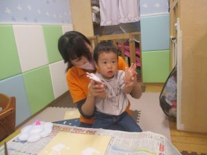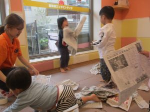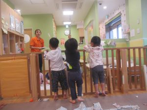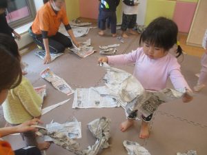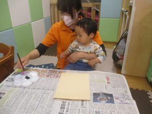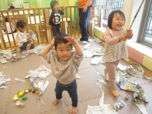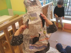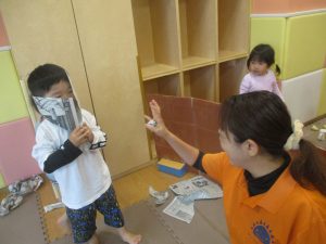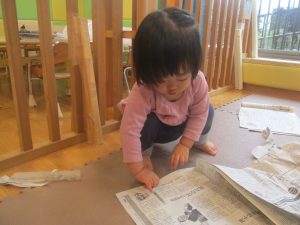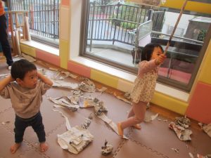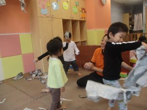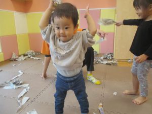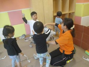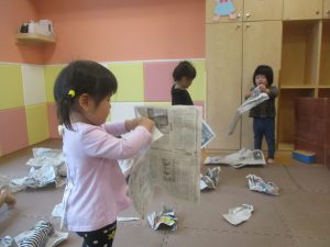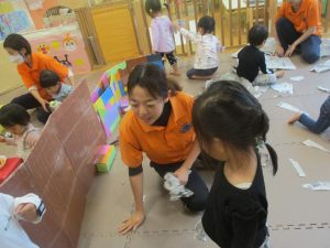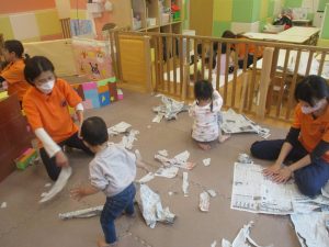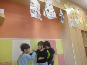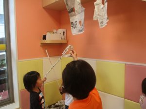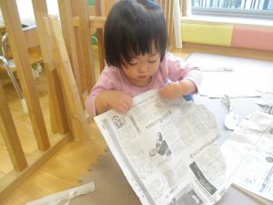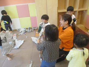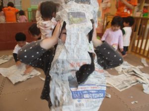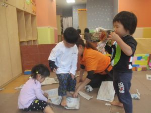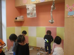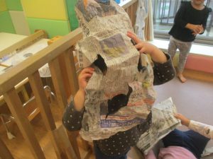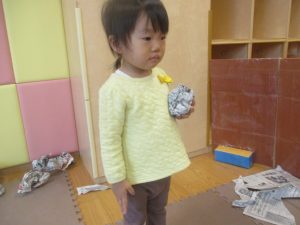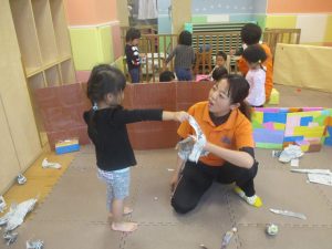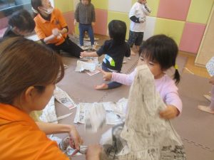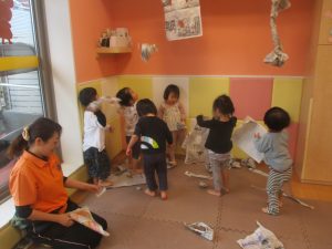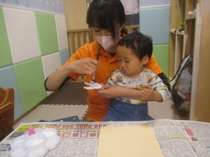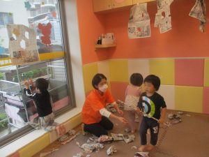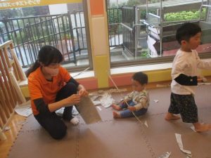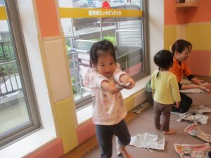 室内では製作活動を楽しんだり、新聞紙、ままごと、絵描き等、盛りだくさんの内容で大満足の様子でした♪
