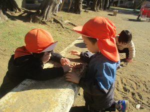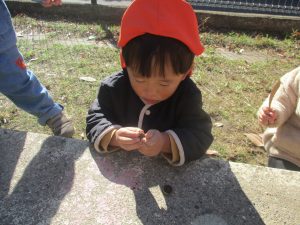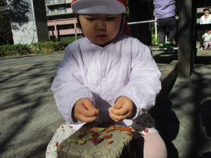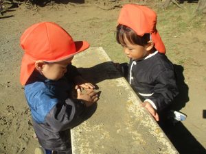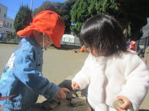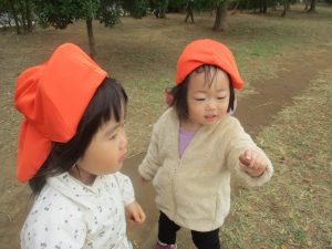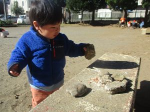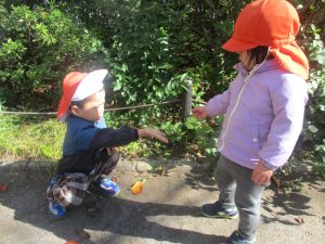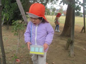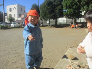 石や木の枝や木の実等、自然物探しを楽しんだり公園内を散策し楽しい時間を過ごしました!
