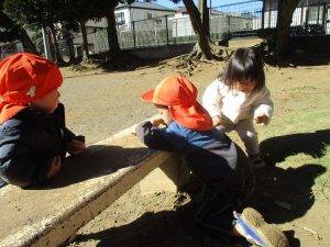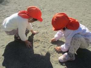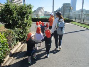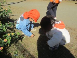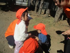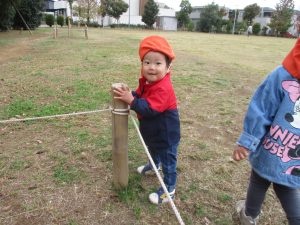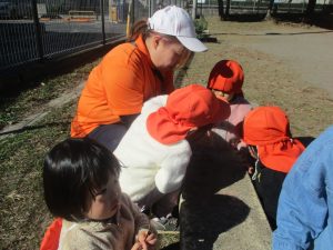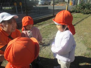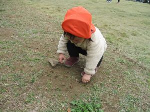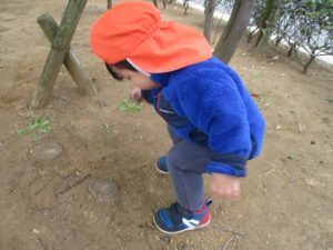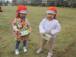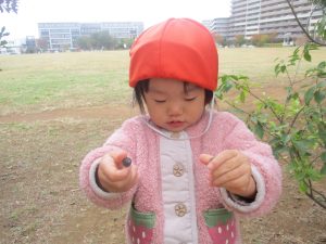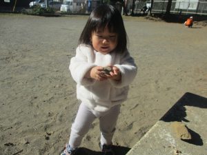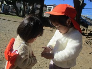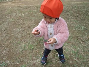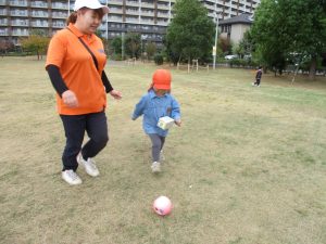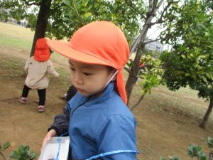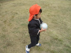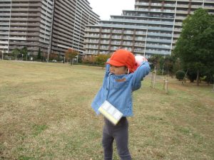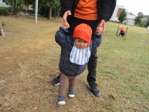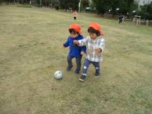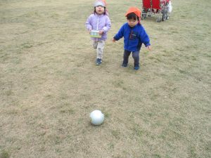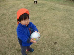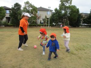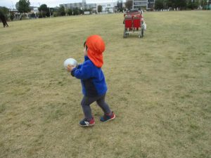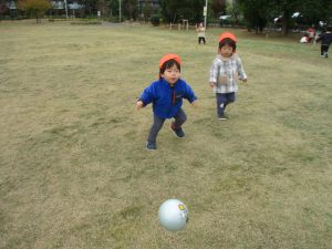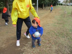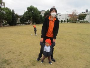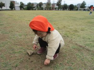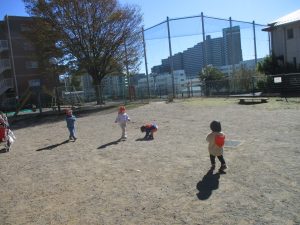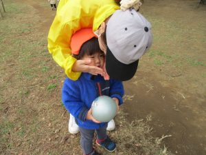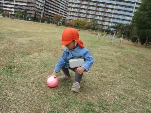 朝方よりも気温が下がりとても寒かったですが、公園内の広場においてボールを使用して思い切り体を動かして遊んだり、自然物探しを楽しみました!