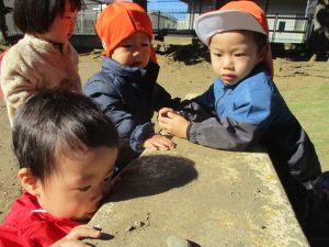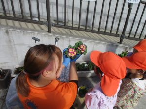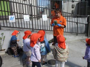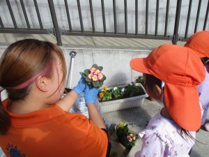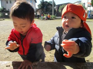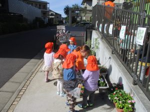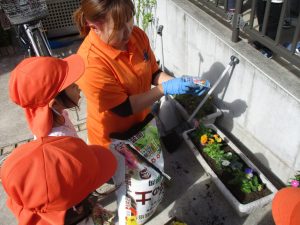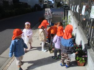 園前の植栽も秋・冬私用に衣替えを行っております。2歳児クラスのお友達はほうれん草の種蒔きを予定しております♪