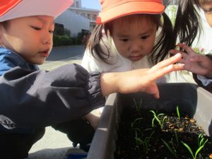 園前のほうれん草も目が出始めました!
