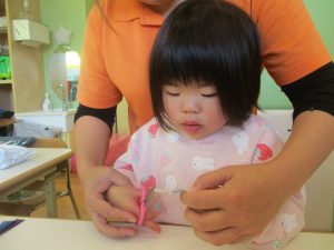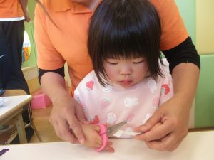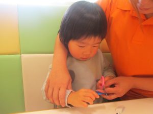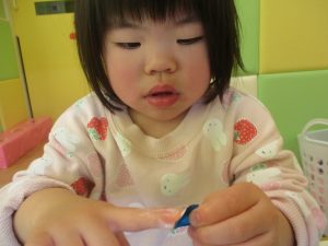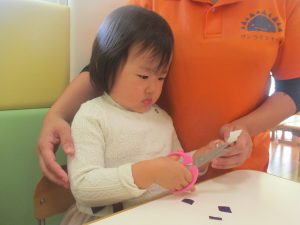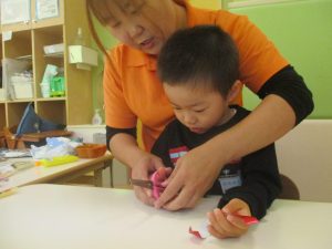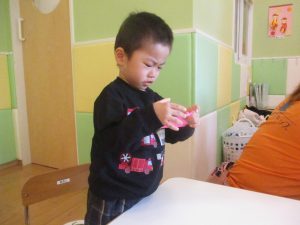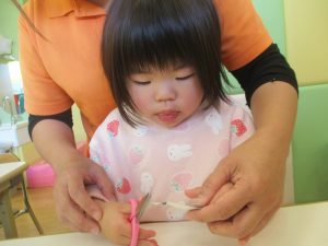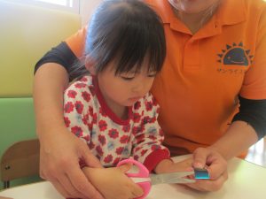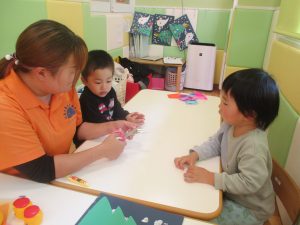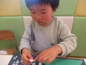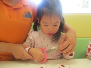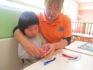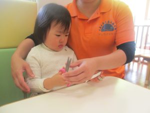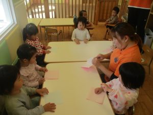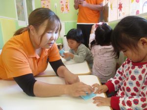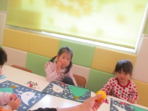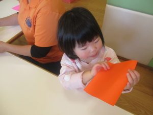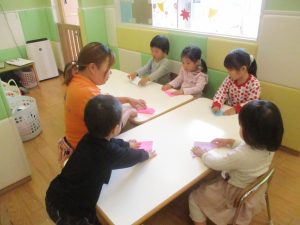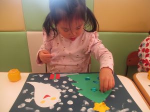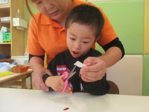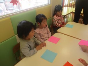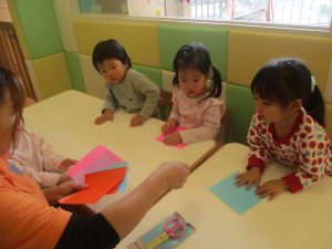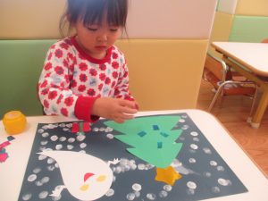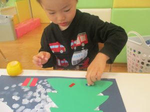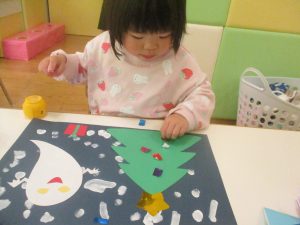 2歳児クラスのお友達は折り紙やはさみに挑戦したり、糊を使用してクリスマス製作を楽しんでおりました!