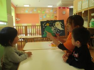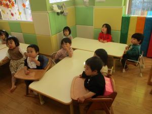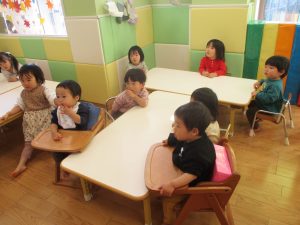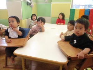 0.2歳児クラスのお友達は室内にて過ごしました。