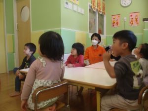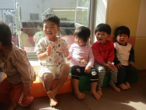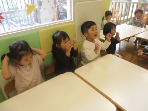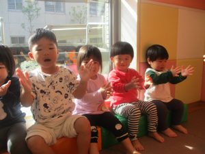 「今日は〇〇だ~!ぼくもやるー!」と、とても意欲的な谷津園のお子様達でございます。