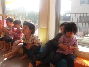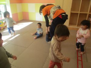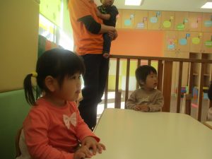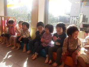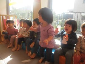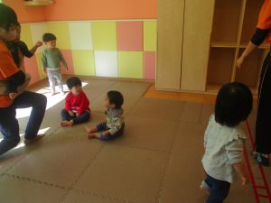 2歳児さんをお手本に小さいクラスのお子様達も意欲的に挑戦しております♪