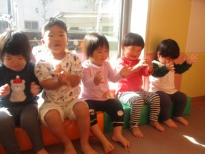 今月のリトミックでは先月までに引き続き”集中力”と”興味”を引き出す、速くなったり遅くなったりする、①テンポの変化を感じとる活動を継続しております。「速い」テンポや「遅い」テンポに合わせて、手拍子の速さも変化できるようになって参りました♪