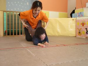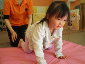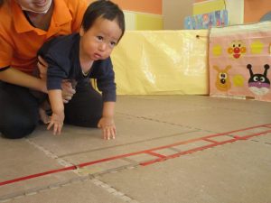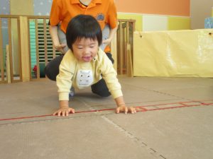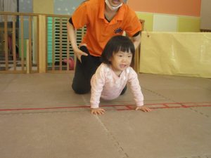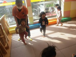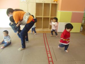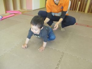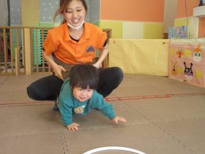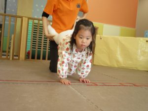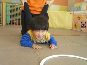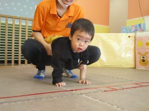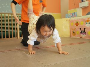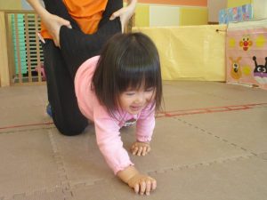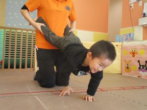先生たちもお子様たちの膝のあたりを支えながら”手押し車”のサポートを行っております☆