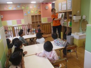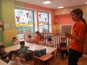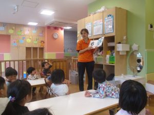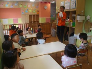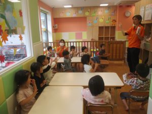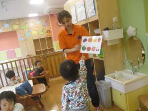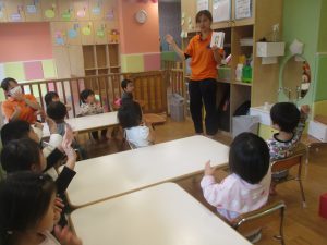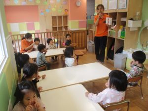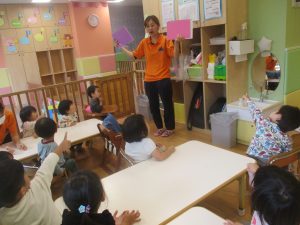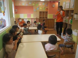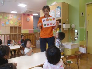 今月の英語では、数字、色、動物、果物、乗り物など、4月~今までに行ってきた英単語の復習を行っております。週替わりでいろいろな組み合わせのフラッシュカードや英語の歌を使って復習をしております。