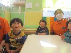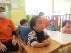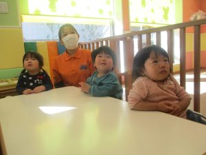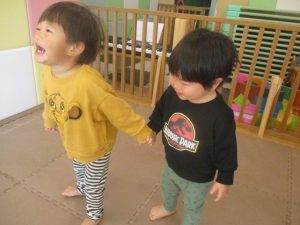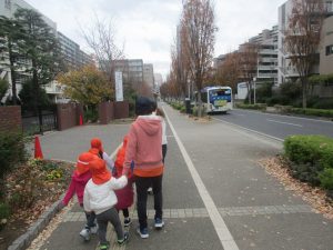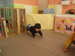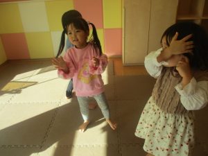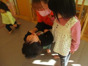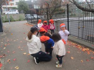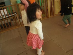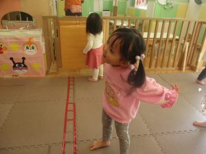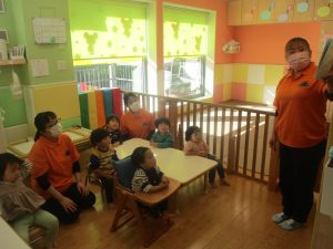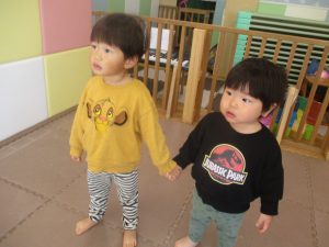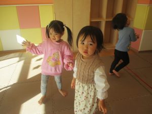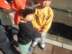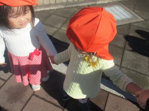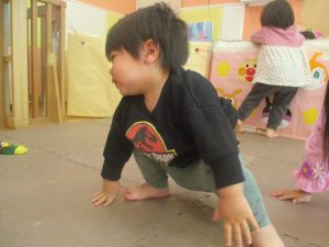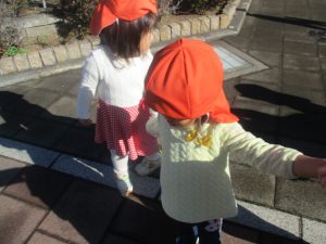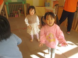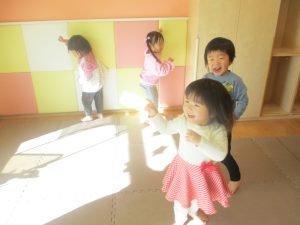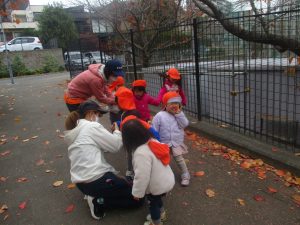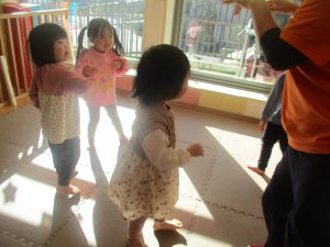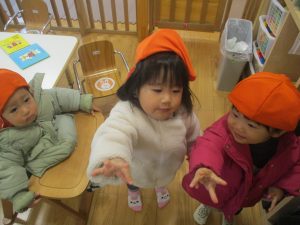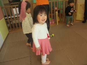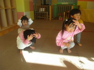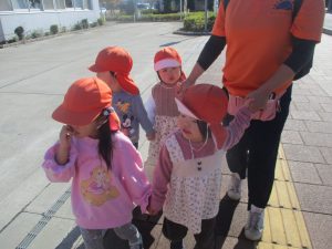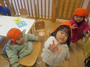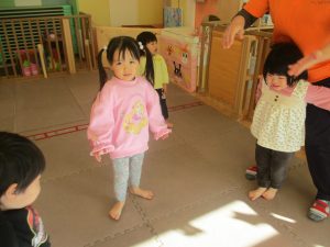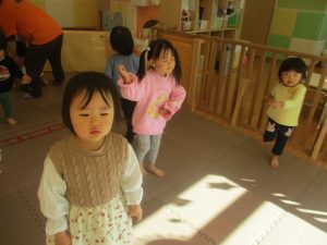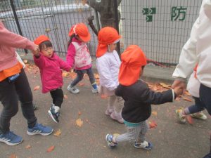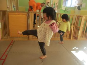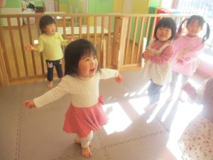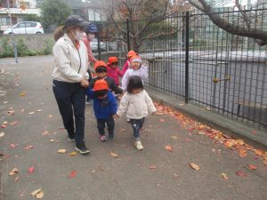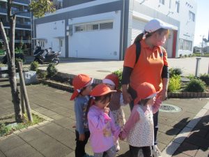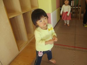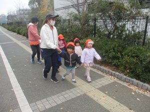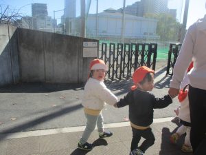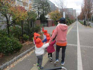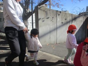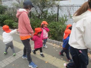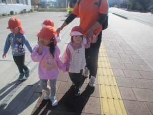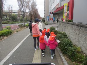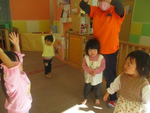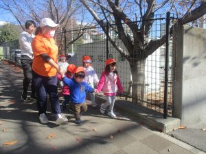 日中は室内でのリズム体操を楽しんだり、園周辺の戸外散歩を行いました!