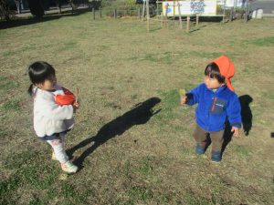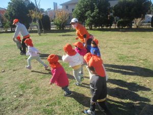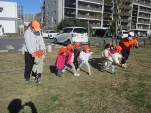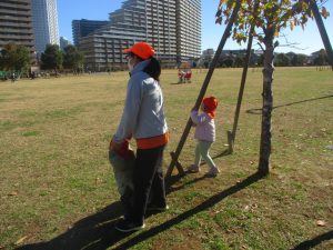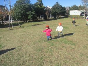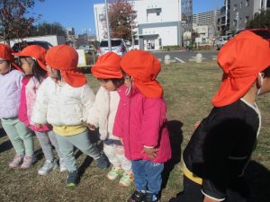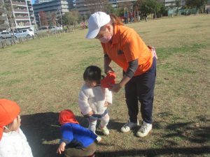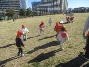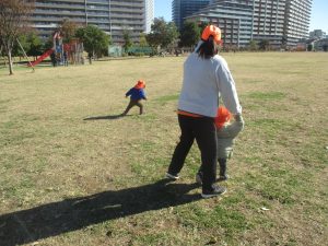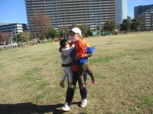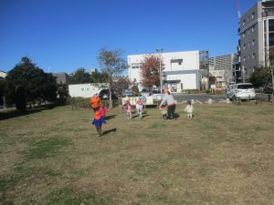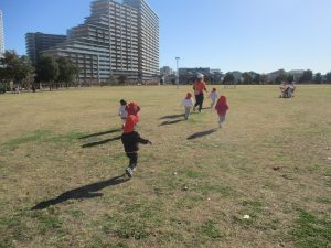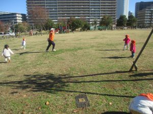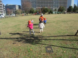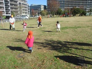 日中は気持ちの良い冬空の下、皆で防災公園にて過ごしました。