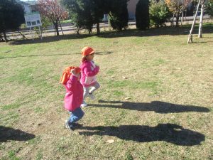 広場での追いかけっこを存分に楽しみ、心身共にポカポカになりました♪