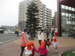 日中は皆で園周辺のショッピングモールへお散歩しに行きました!