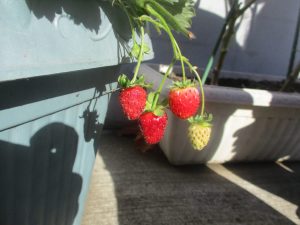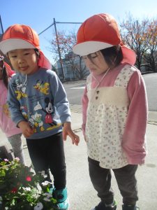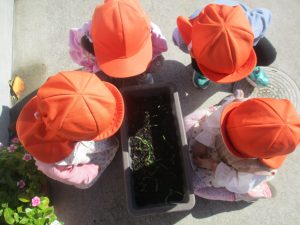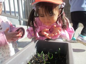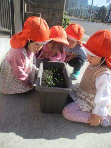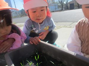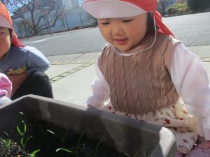 園前のほうれん草やいちごの生長も皆で確認しました。大きく育ってほしいね♪
