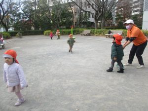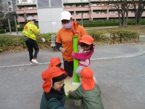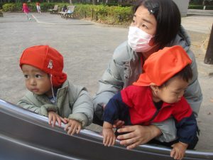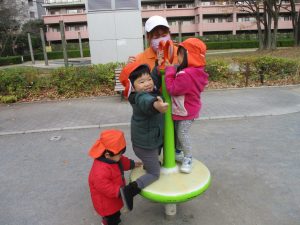 久しぶりにお子様達全員が登園し、公園内で遊ぶ際もとても賑やかな様子となりました。