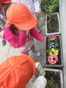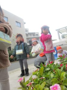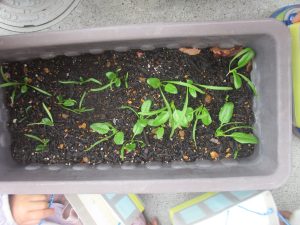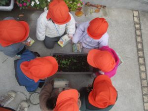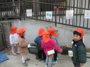 園前のほうれん草が日に日に大きくなって様子も日々観察し、生長を皆で喜んでおります。