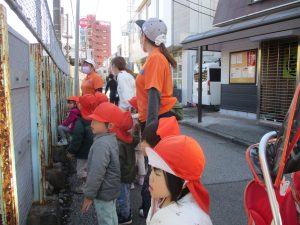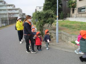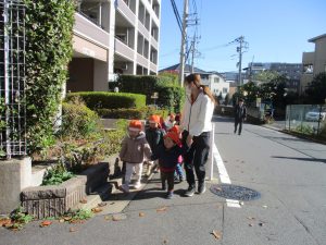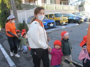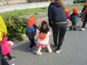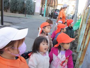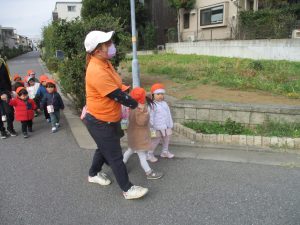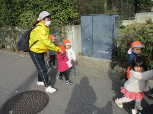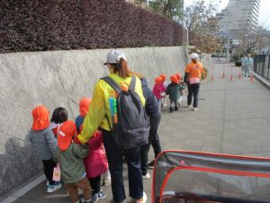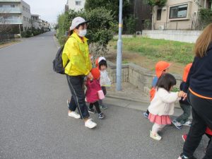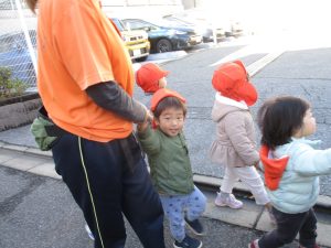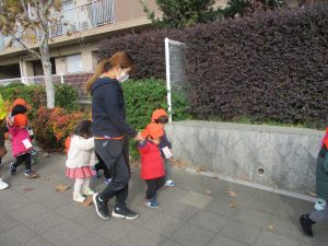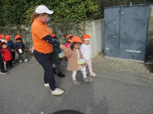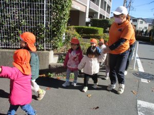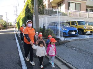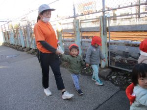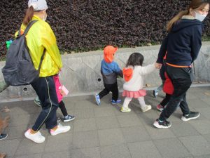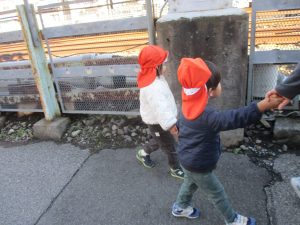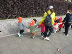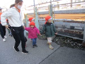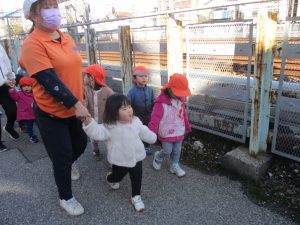 たくさんの電車を見たりお子様同士で仲良く手を繋いで歩き、雰囲気良く戸外散歩を行えました。