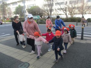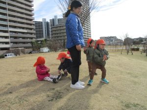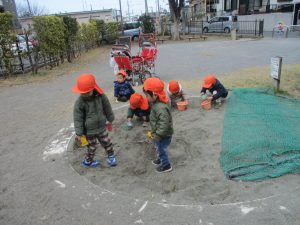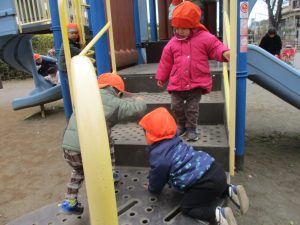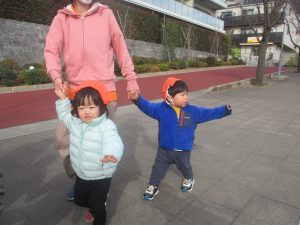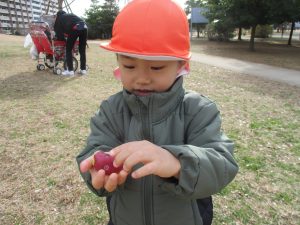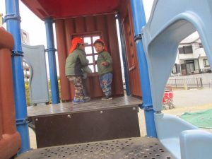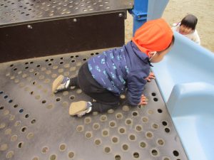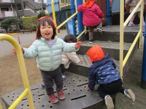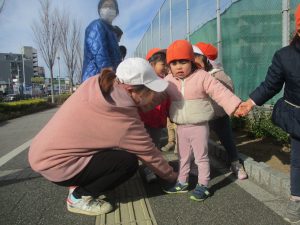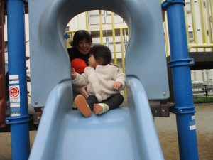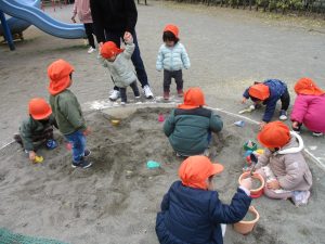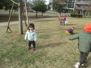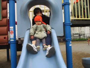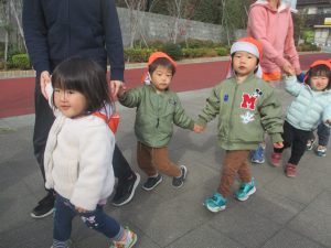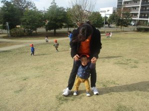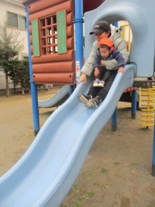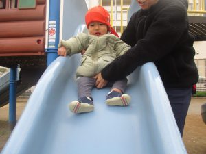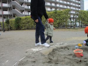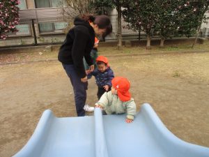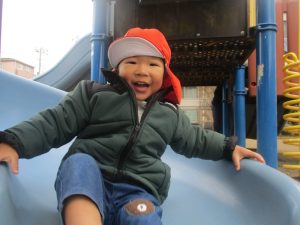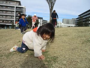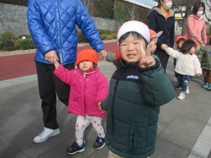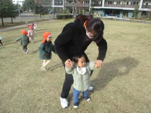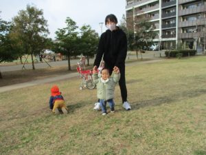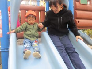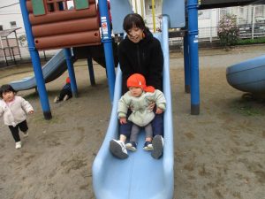 日中は皆で5丁目公園にて過ごしました!1歳児クラスのお友達は初めてですかね?