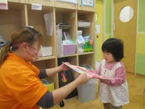 2歳児クラスの女の子が1名、今月で退園となりました。