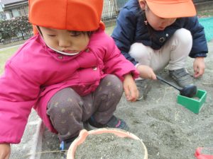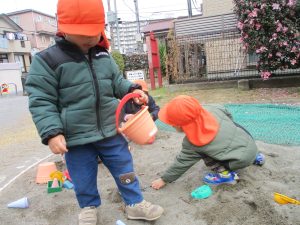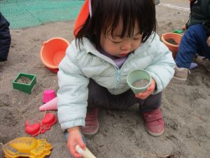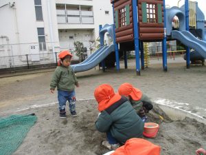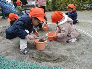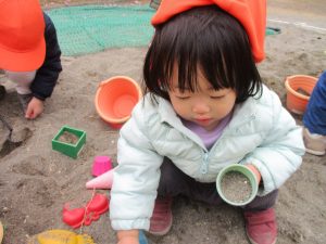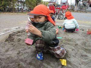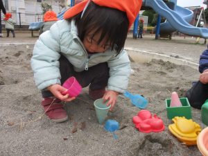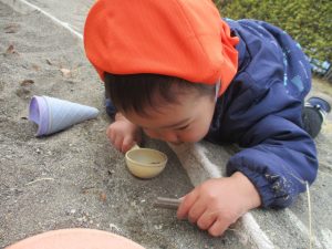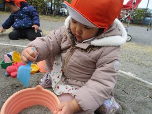 砂場でのままごと遊びを楽しんだり、グルグルすべり台を使用して思い切り体を動かして遊びました。