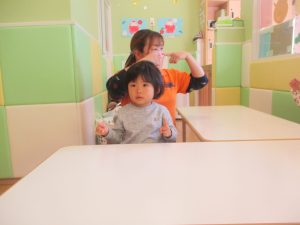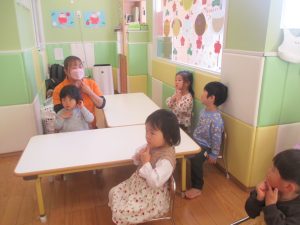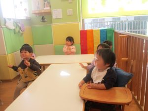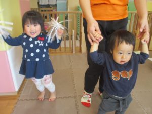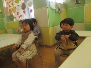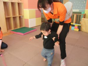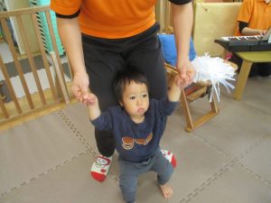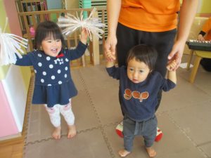 0歳児クラスのお友達も少しずつ歩行を獲得し、お兄さんお姉さんの真似をしながら可愛く踊りを楽しんでおります♪