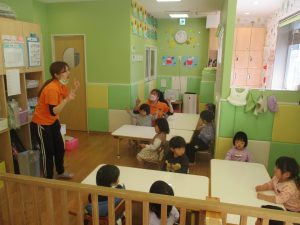 また、フラッシュカードや「Finger Family Song」、「One Little Finger」と言う手遊びも盛り上がっております☆