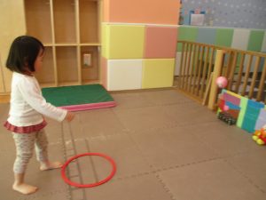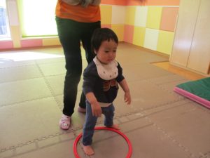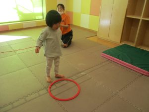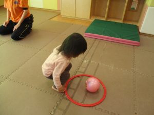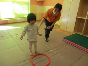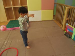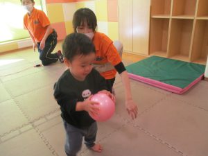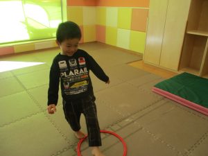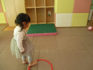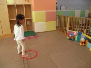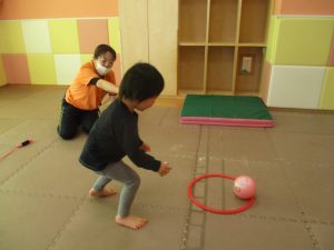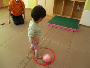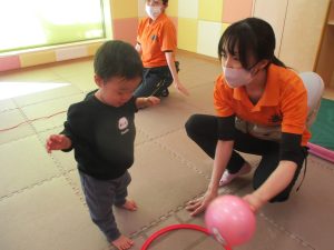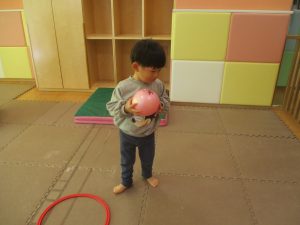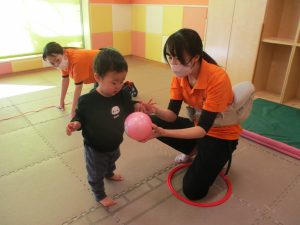 また、今まで行ってきたボールやフープを使った活動も少しずつ難しい形に変えてチャレンジをして頑張っているところです♪