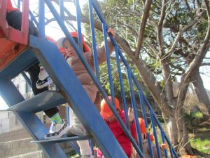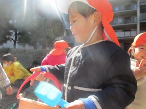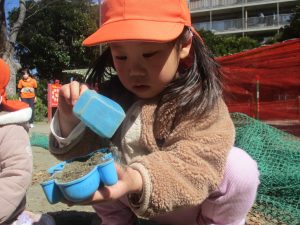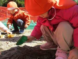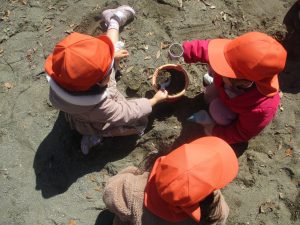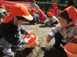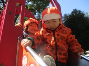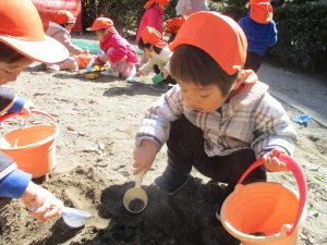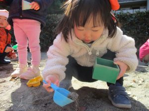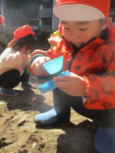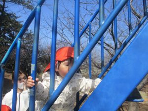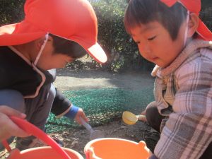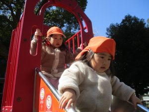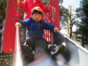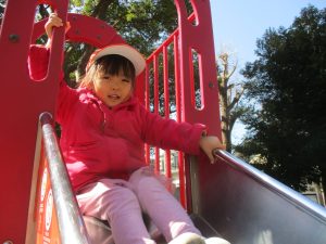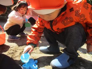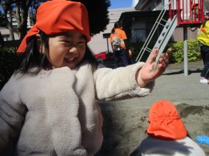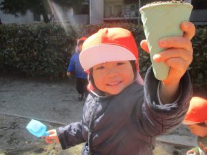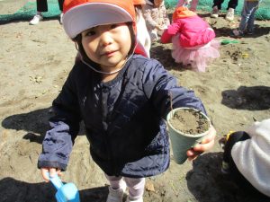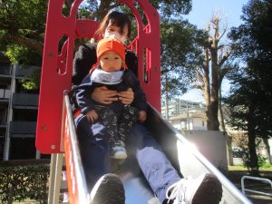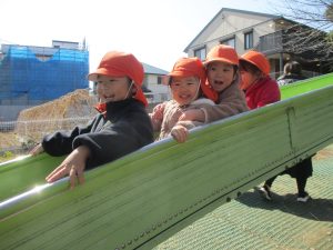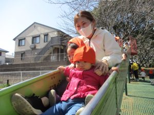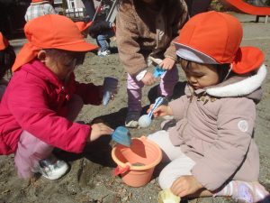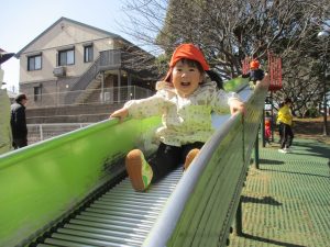 気持ちの良い青空の下気温もグンと上がり、砂場でのままごと遊びや滑り台を使用して楽しい時間となりました!