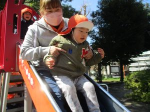 大人気のローラー滑り台を使用して、皆で楽しく遊びました!