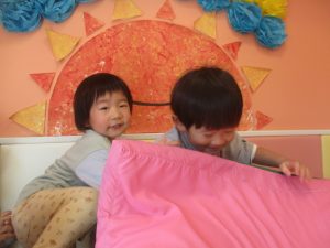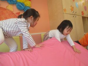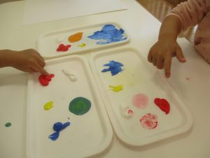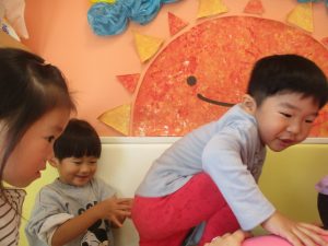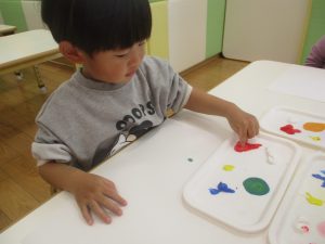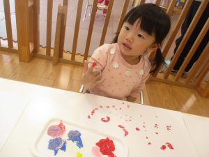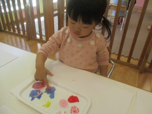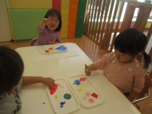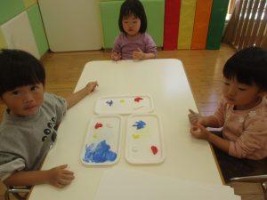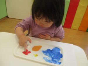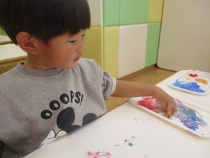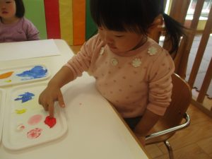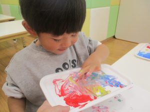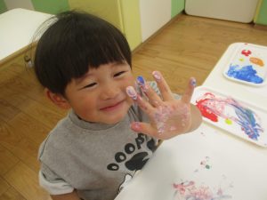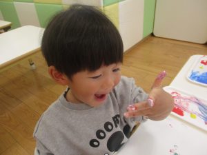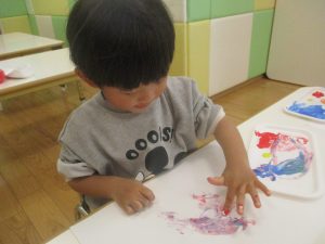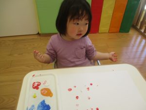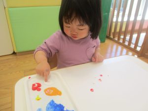 フィンガーペイントを楽しんだり、コットすべり台でたくさん体を動かしました。