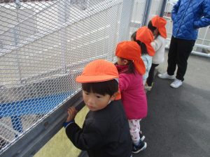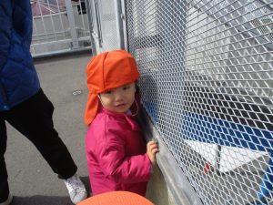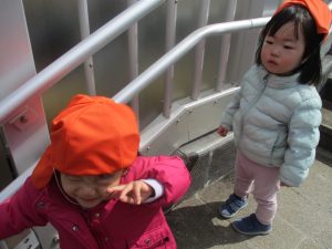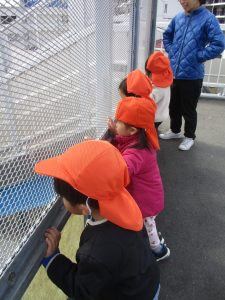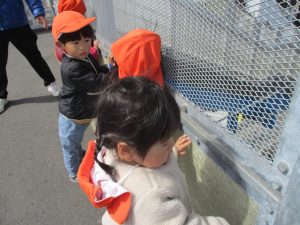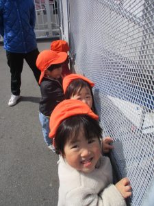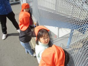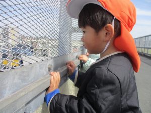 1歳児クラスのお友達は津田沼駅周辺の陸橋から電車をたくさん眺めました。