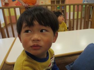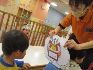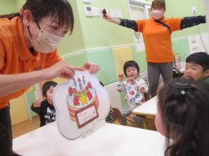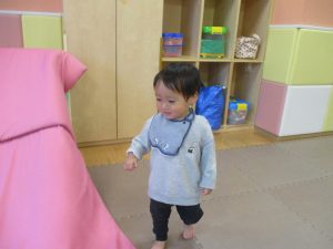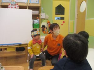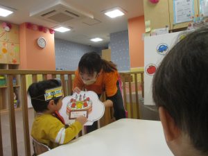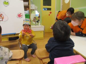 今年度最後の誕生会を行いました!3月生まれの1歳児クラスの男の子。