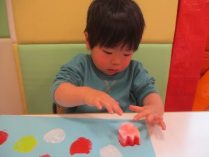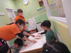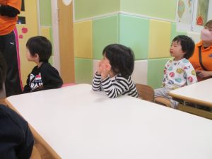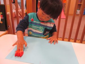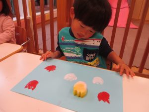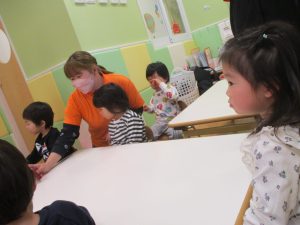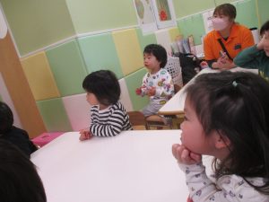 日中は室内にて過ごしました!1歳児クラスのお友達は早速来年度4月の製作を行いました。
