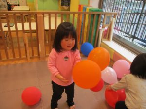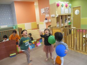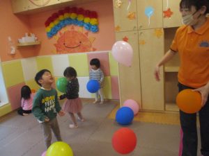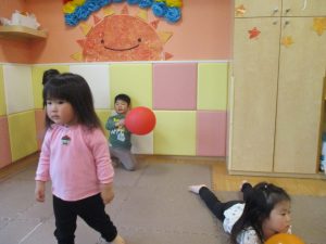 育脳リトミック、風船遊びを通してたくさん体を動かしました。