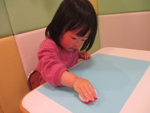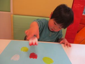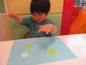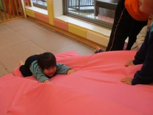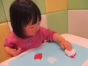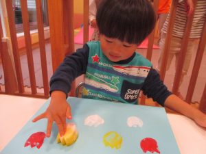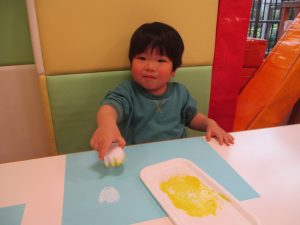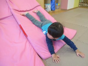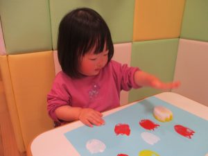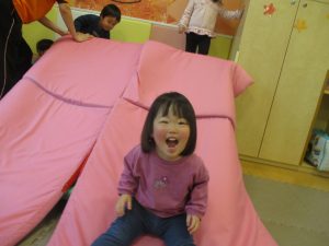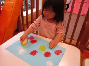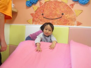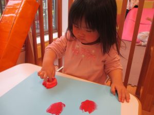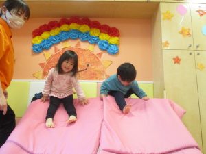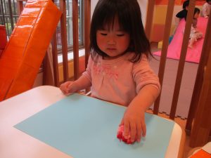 色鮮やかなスタンプに春を感じますね♪保育室ではコットすべり台を使用してたくさん体を動かしました。