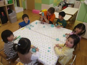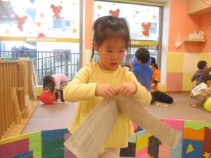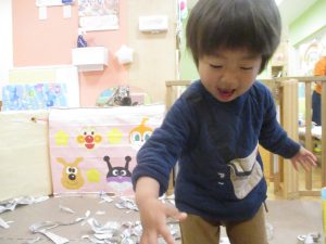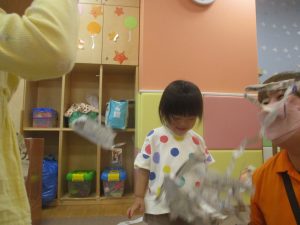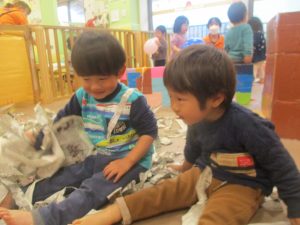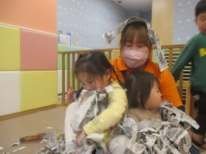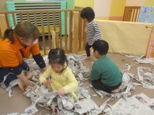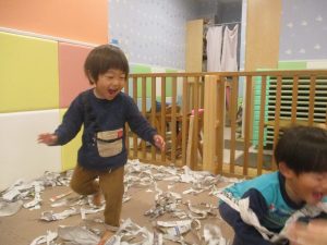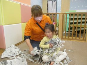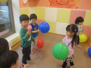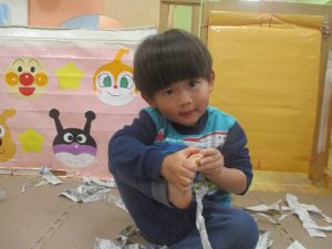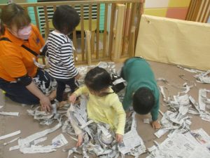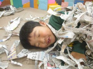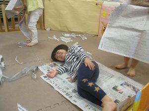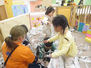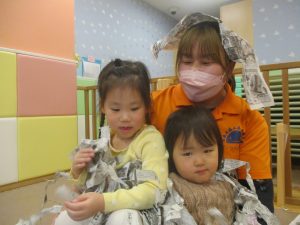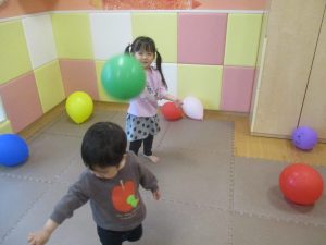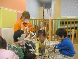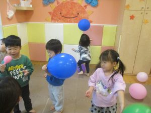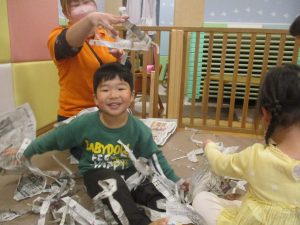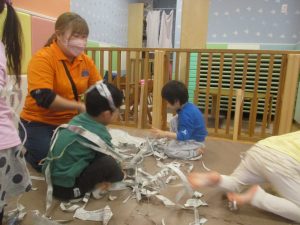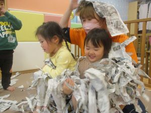 新聞紙や風船を使用してたくさん体を動かしたり、年度遊びに夢中でした。