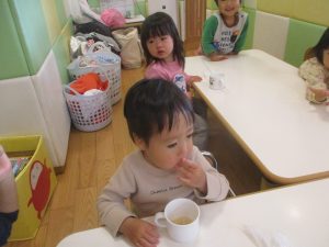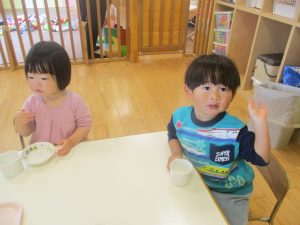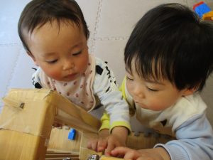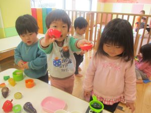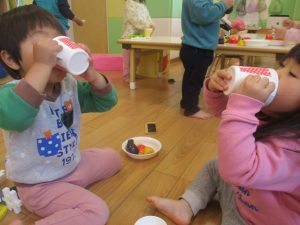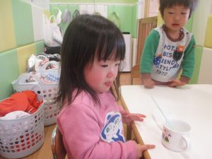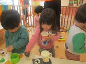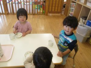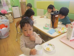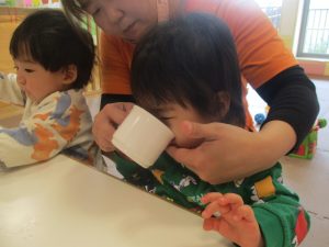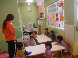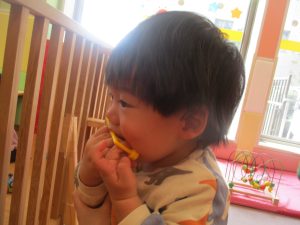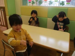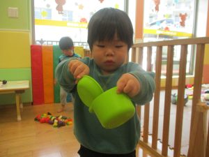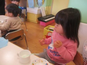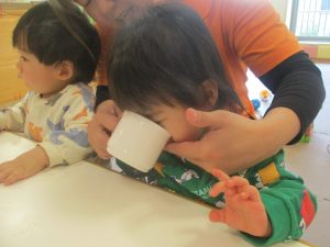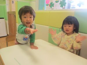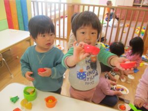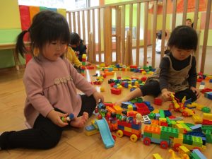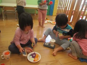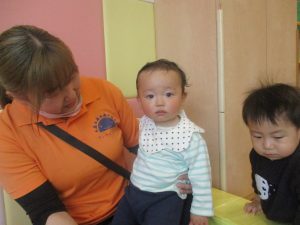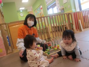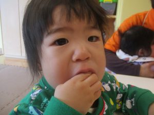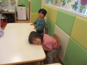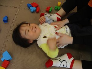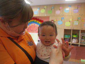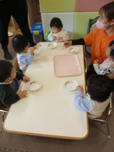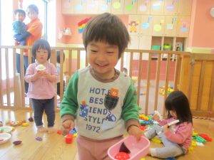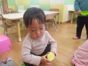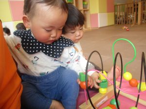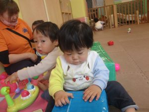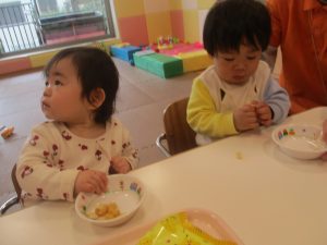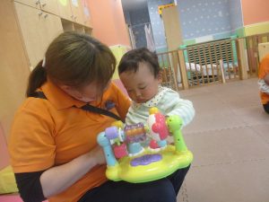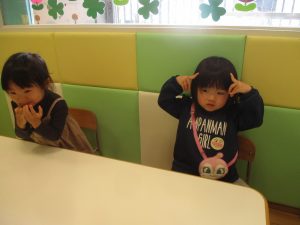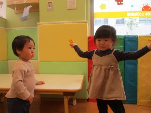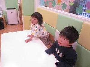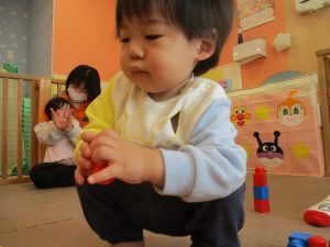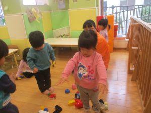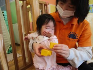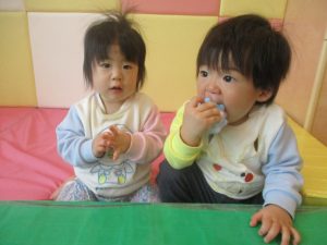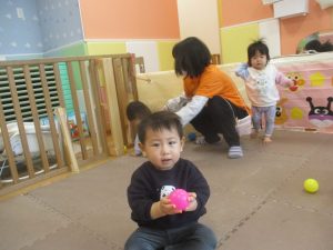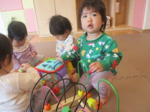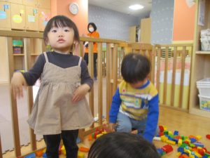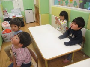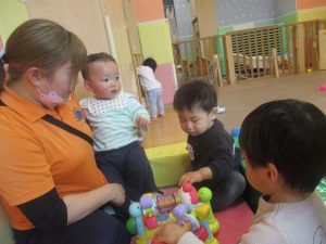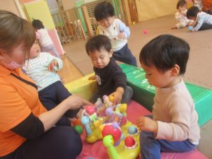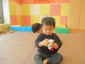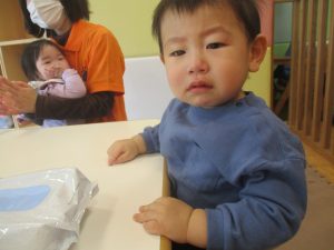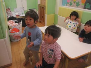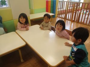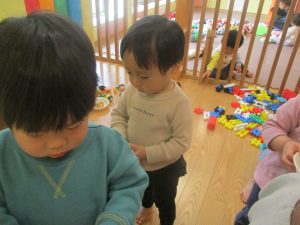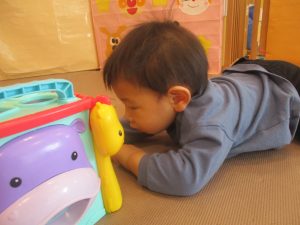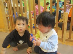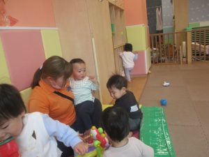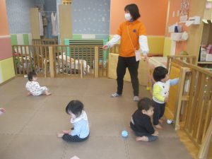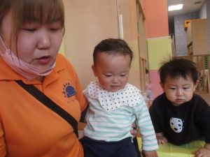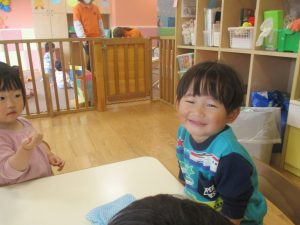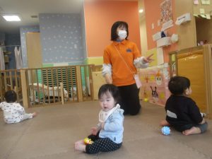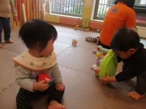 0.1歳児クラスのお友達は室内にて過ごしました。