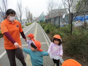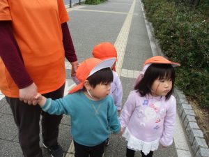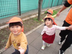 2歳児クラスのお友達は園周辺の戸外散歩を行いました。