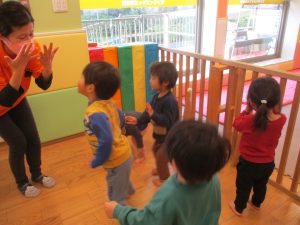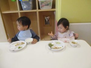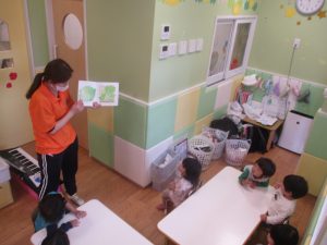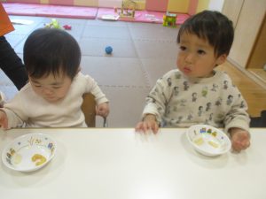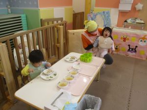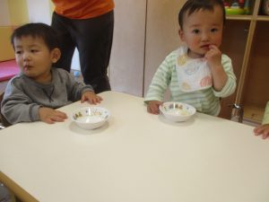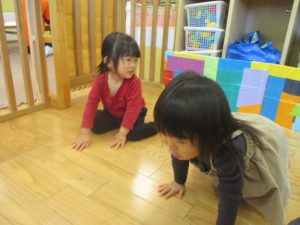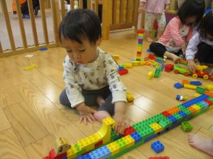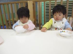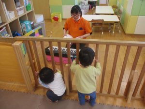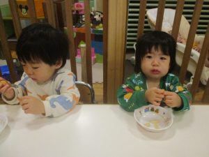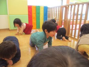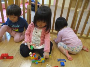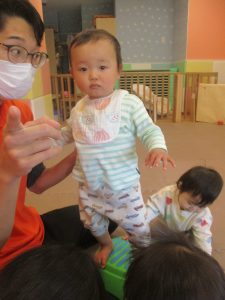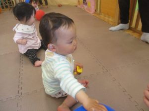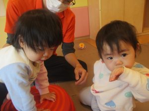 0.1歳児クラスのお友達は室内にて過ごしました。