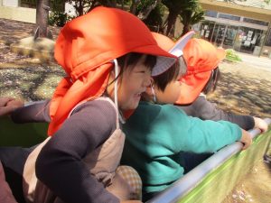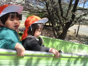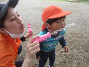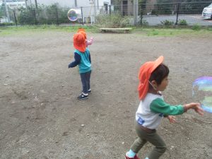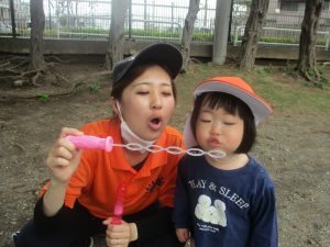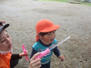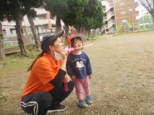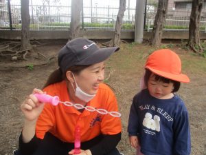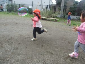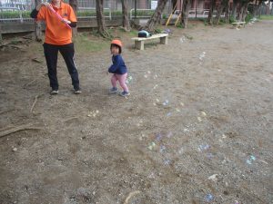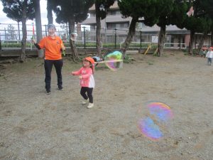 シャボン玉を追いかけたり公園内を楽しく散策しました。