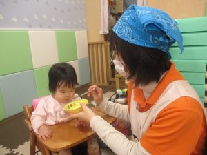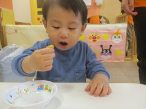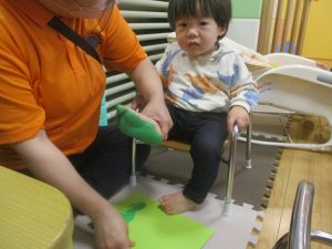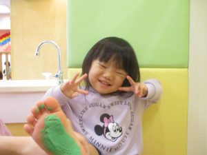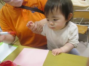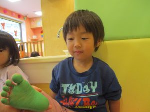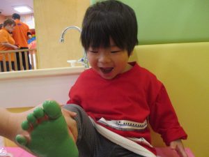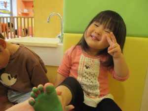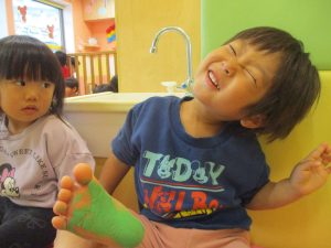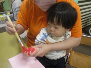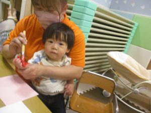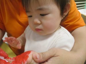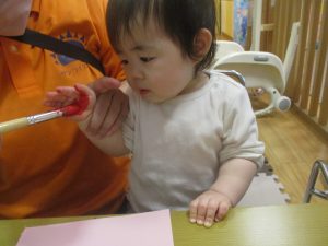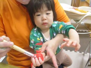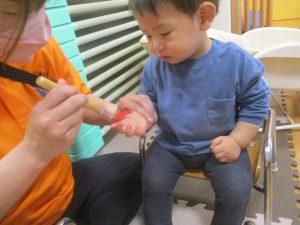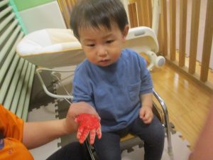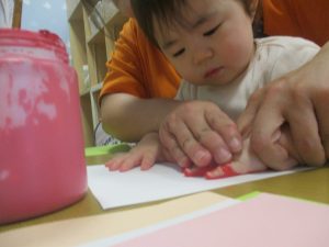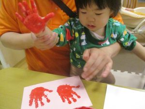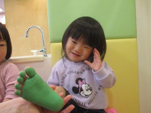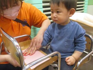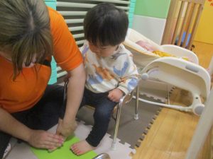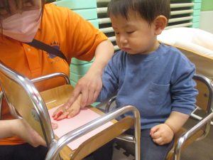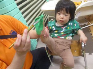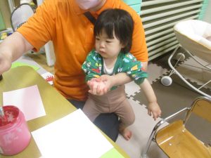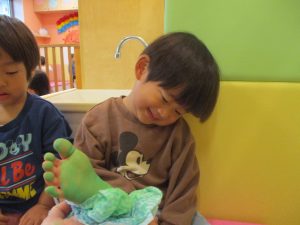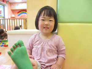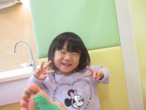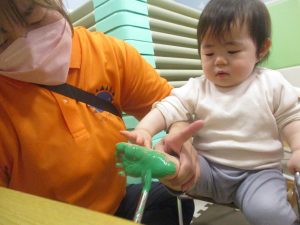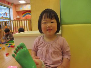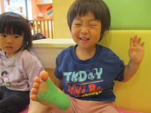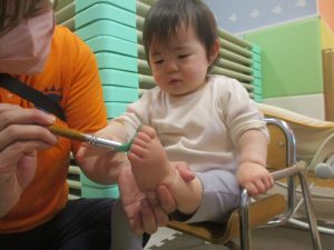 製作用に足形と手形を取りましたが、新入園のお子様は初めて?の感触にとても不思議がっておりました。