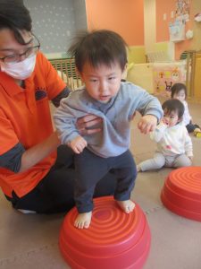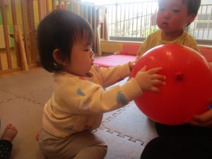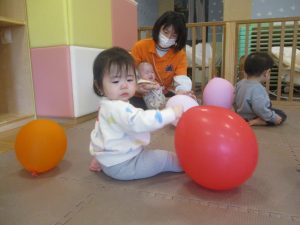 平均台や風船を使用して体を動かしたり、鈴を使用したリトミックを楽しみました!