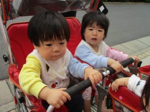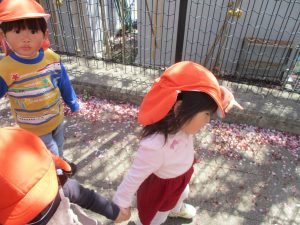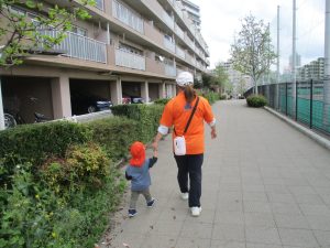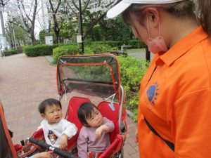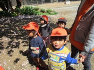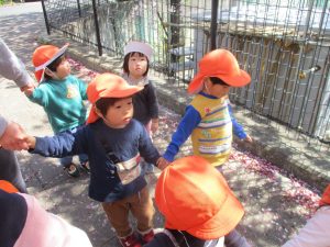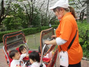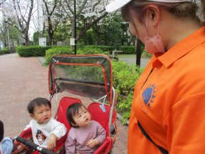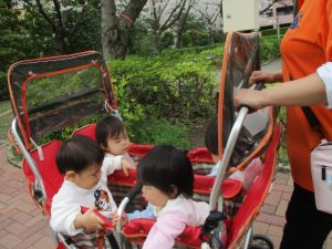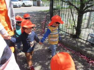 1歳児クラスのお友達も本日より戸外散歩をスタートいたしました。