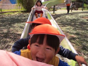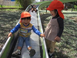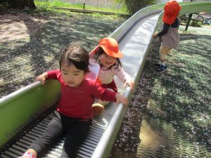 ローラー滑り台でたくさん体を動かしたり、自然物探しに夢中でした!