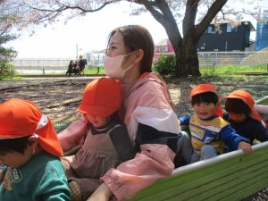 街の桜はだいぶ散ってしまいましたが、園内はこれからもずっと笑顔満開で行きたいと思います。
