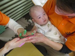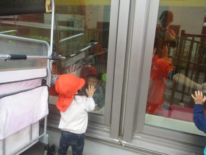 0歳児クラスのお友達は室内にてゆっくりと過ごしました。1日でも早く戸外で過ごしたいね!