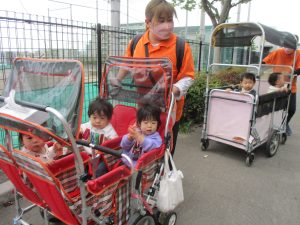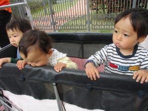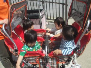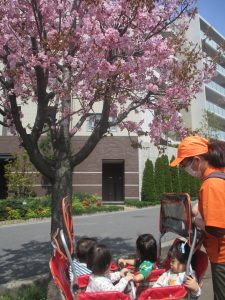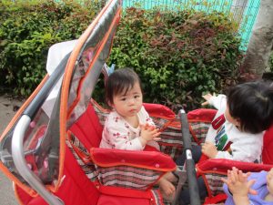 1歳児クラスのお友達は園周辺をぐるっと散歩いたしましたが、暖かな気候で気持ち良くなり、眠る子もおりました♪