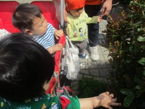 1歳児クラスのお友達は園周辺の戸外散歩を楽しみました!