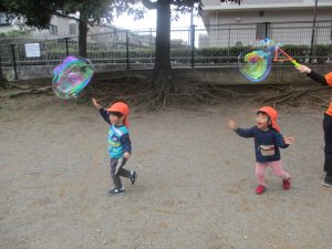シャボン玉を追いかけたり、公園内散策を楽しみました!