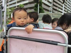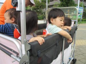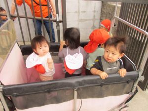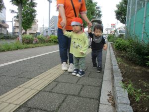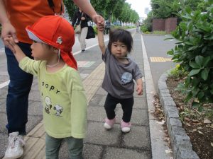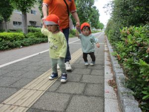 日中は年齢別に戸外散歩を行いました!